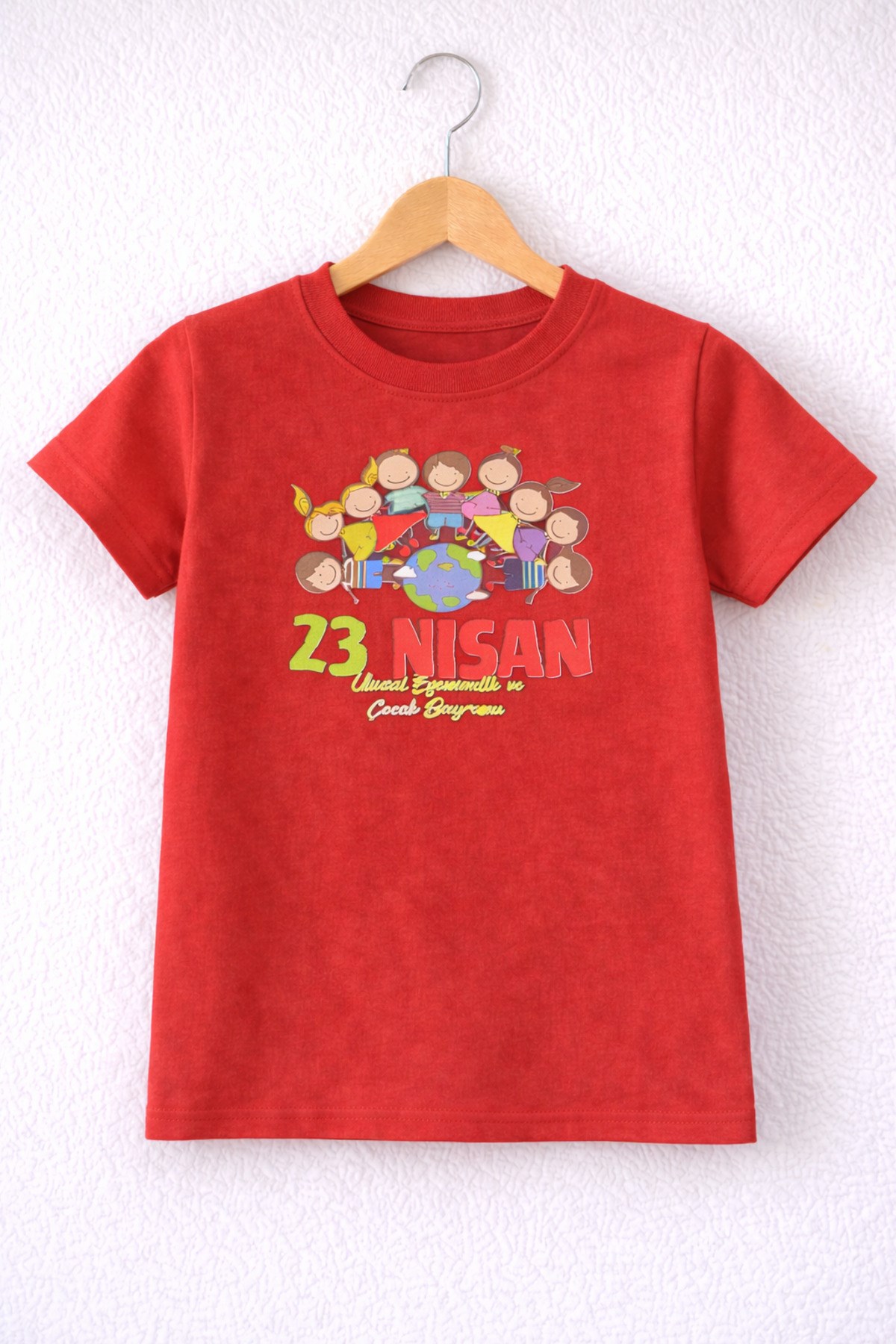 23 Nisan Baskılı Kırmızı Kısa Kollu Çocuk Tişört
