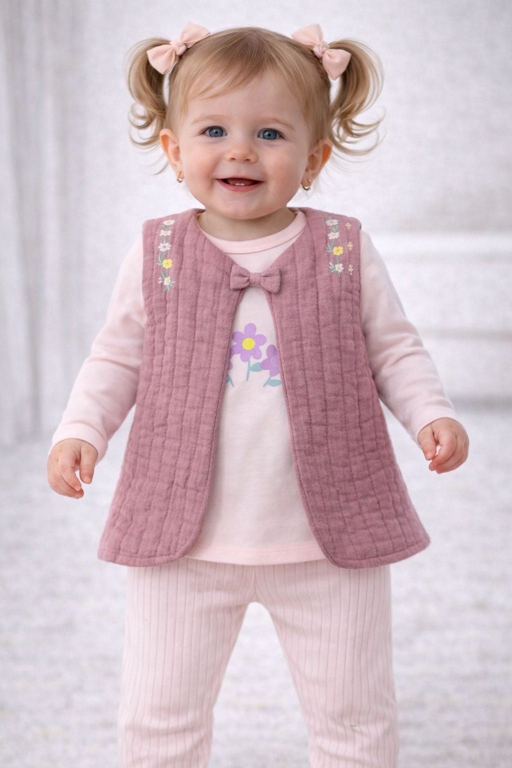 ÇİÇEK NAKIŞLI YELEKLİ 3LÜ TAKIM