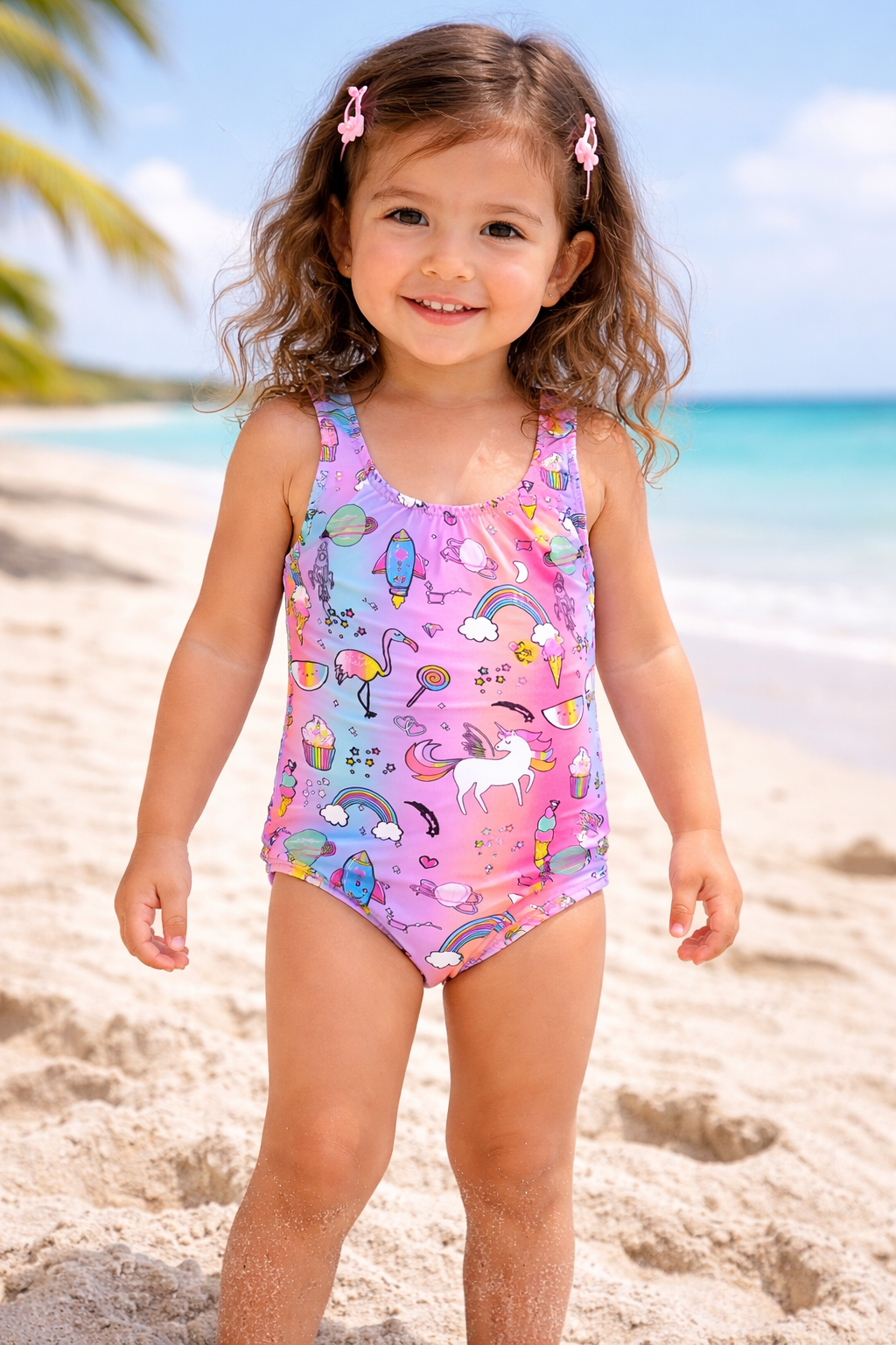 – Gökkuşağı unicorn desenli tasarımı ile çocukların hayal dünyasına hitap eder ve yazın enerjisini yansıtır.