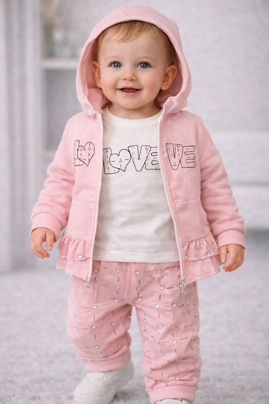 KALPLİ LOVE KIZ BEBEK TAKIMI 3LÜ