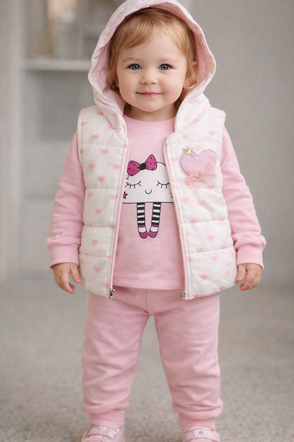 KAPŞONLU YELEKLİ KIZ BEBEK EŞOFMAN TAKIMI 3LÜ