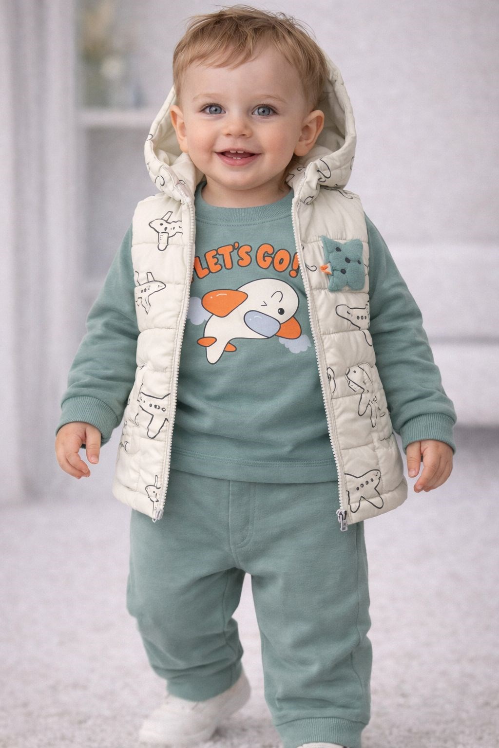 KAPŞONLU YELEKLİ UÇAK FİGÜRLÜ 3 LÜ TAKIM
