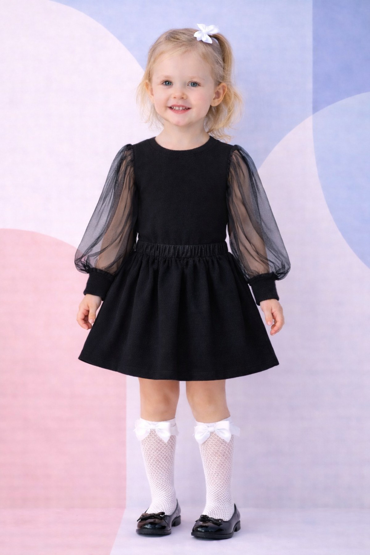 Kız Çocuk Siyah Tül Kollu Ve Siyah Lastikli Etek Takım İle Beyaz File Çorap Set