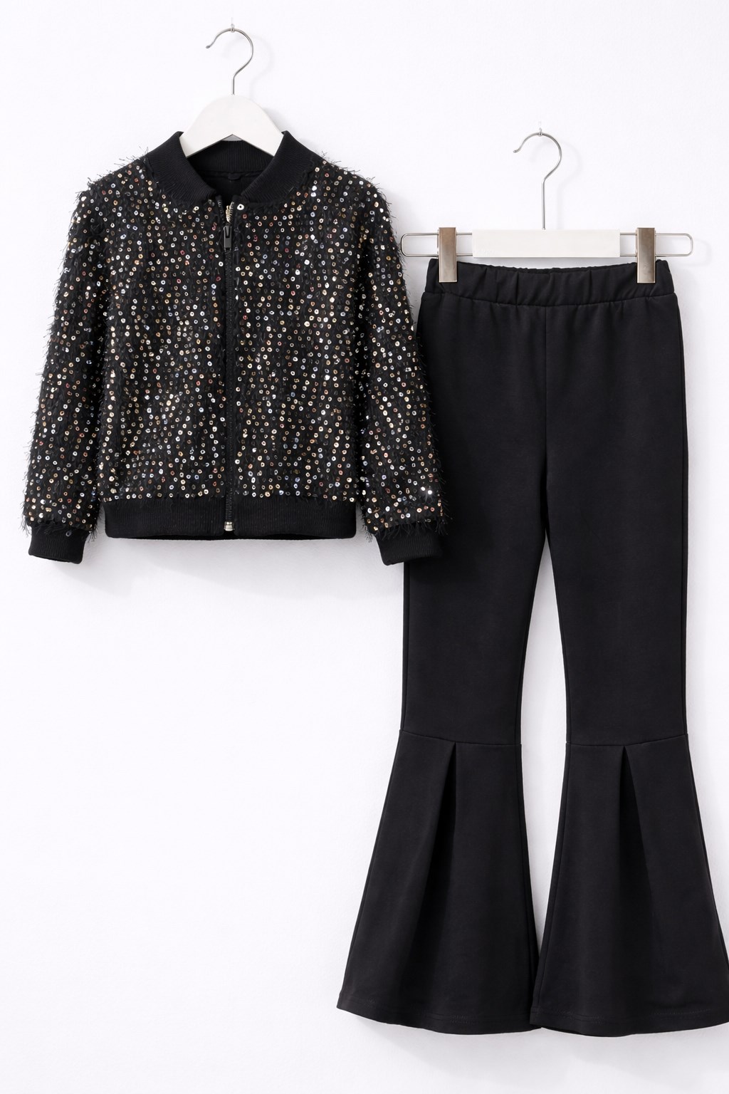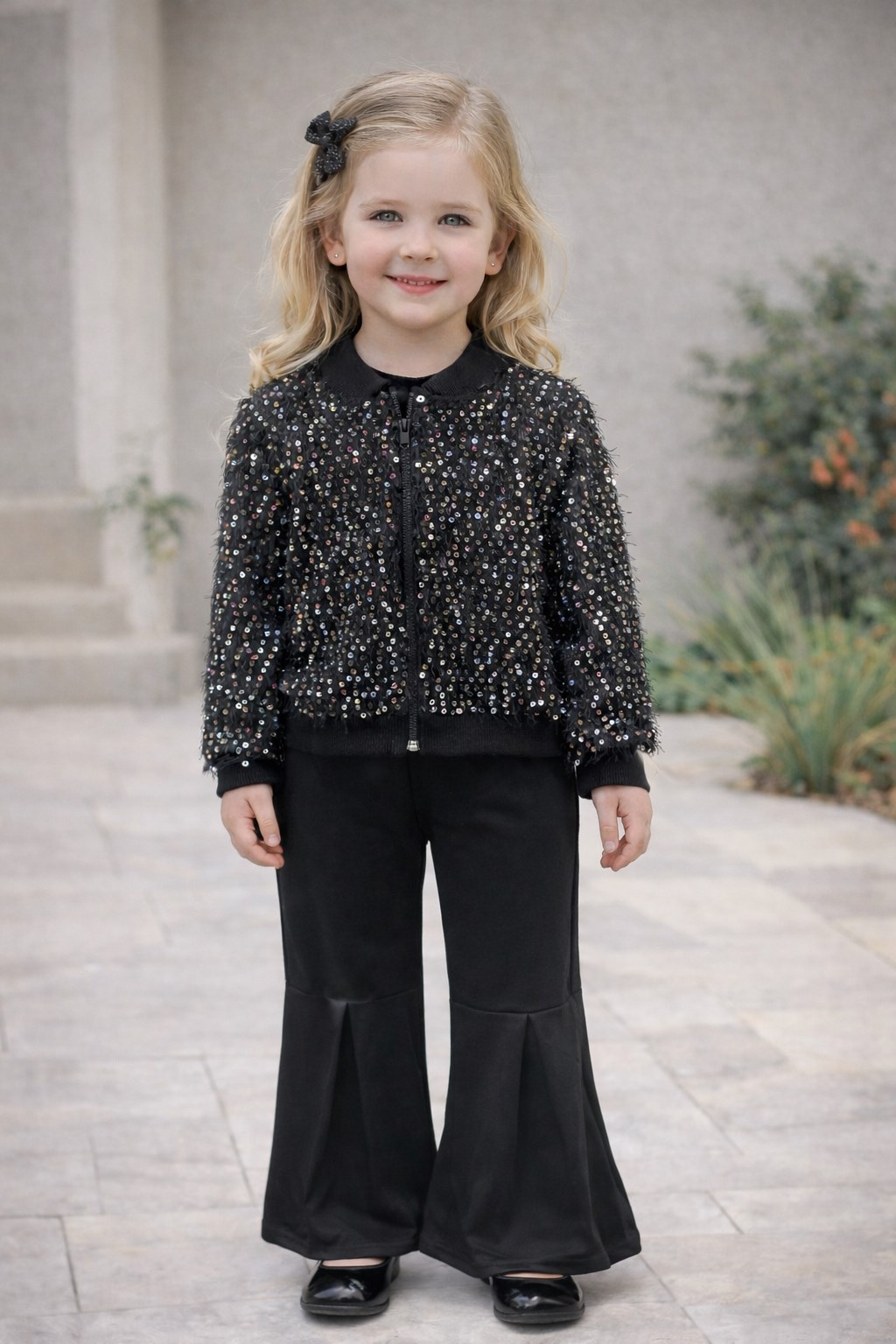 Pul Payetli Siyah Kız Çocuk Pantolonlu Takım