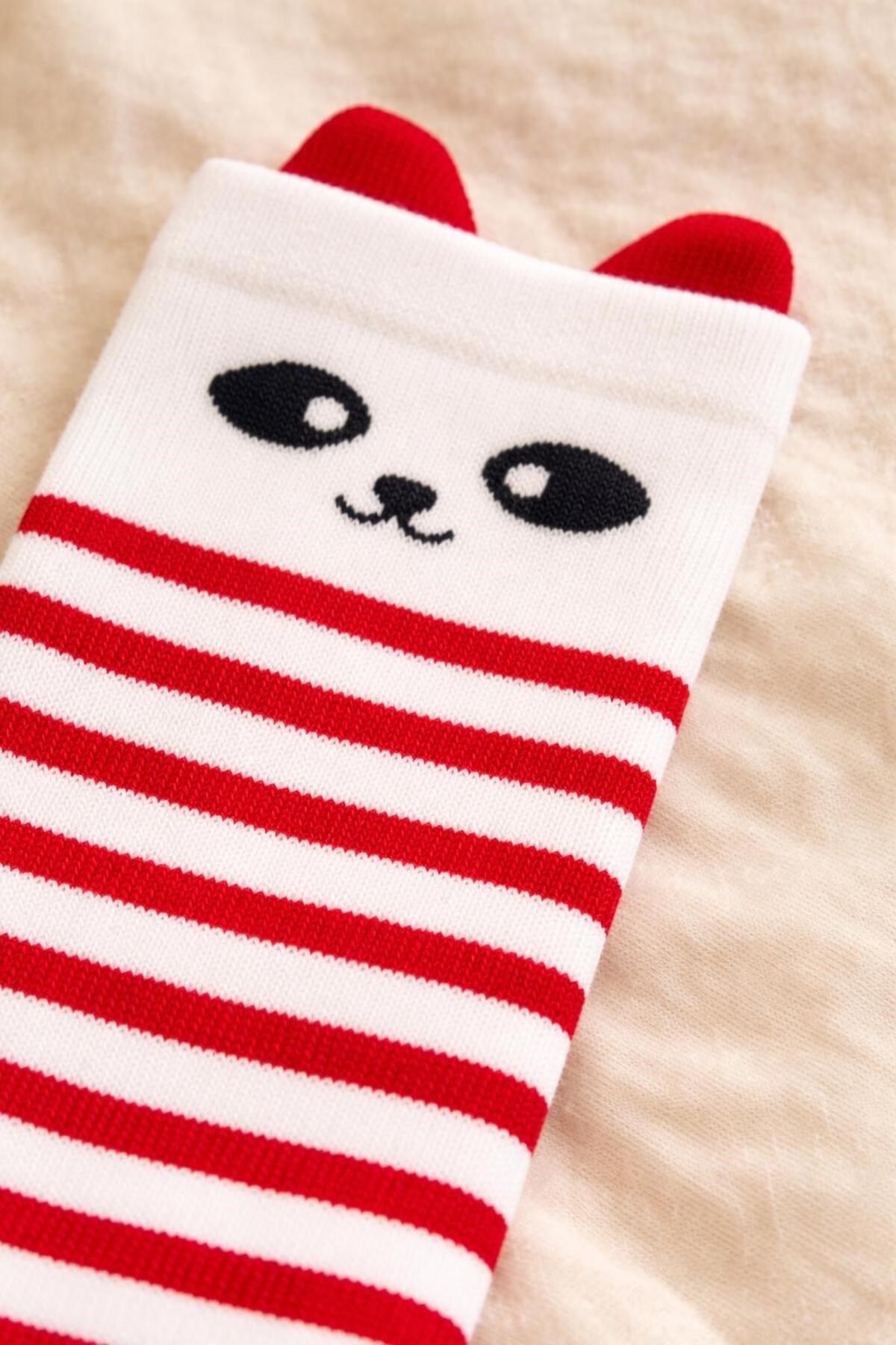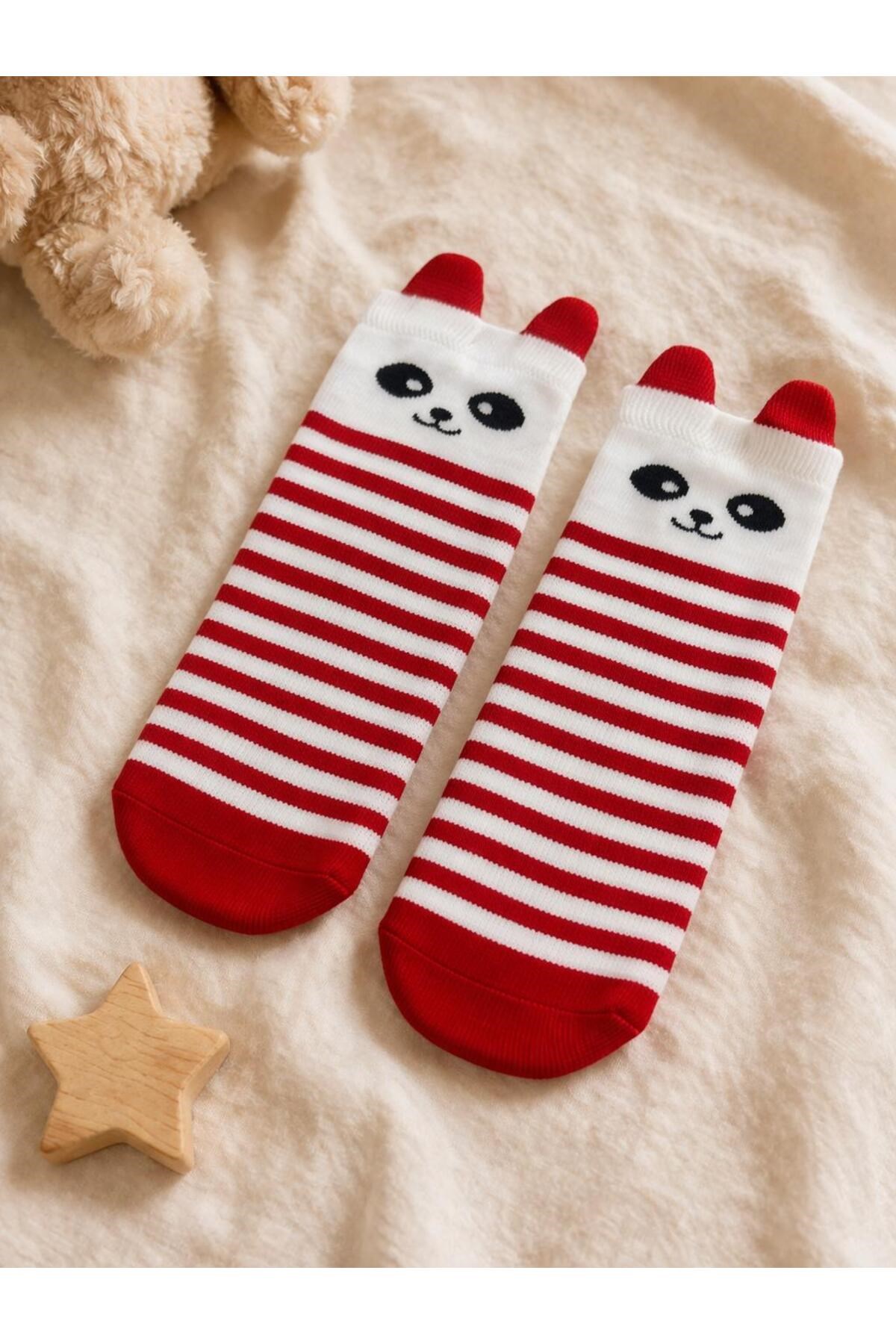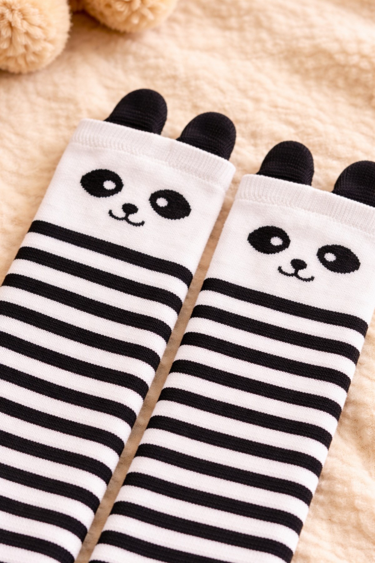 Turuncu Çizgili Panda Desenli Diz Altı Çorap